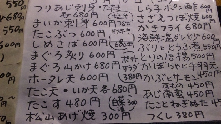本日のたんたん山おすすめメニュー 2012年03月10日 (土)<香代の店たんたん山>