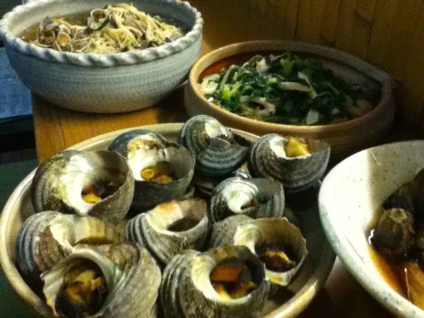 さざえつぼ焼き、ネギすみそあえ 2012年09月15日 (土)<香代の店たんたん山>