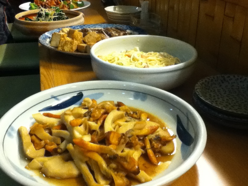 タケノコとマテ貝にもの、若鶏甘酢 2012年12月19日 (水)<香代の店たんたん山>